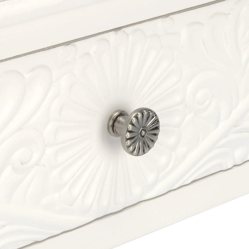 Rivitalizzando il sontuoso fascino del Vecchio Mondo per un arredamento moderno, questa consolle è un elemento centrale di grande impatto in qualsiasi soggiorno o ingresso. Josie sfoggia una maestria artigianale con motivi floreali meticolosamente intagliati sui suoi due ampi cassetti, e una finitura che conferisce un tocco moderno alla sua struttura in stile classico.