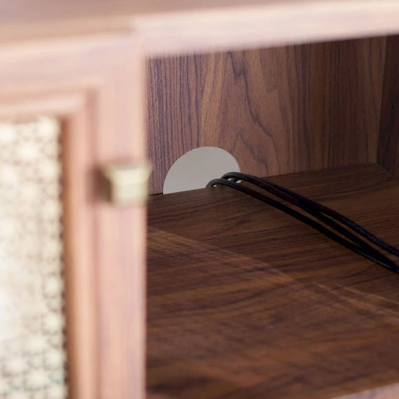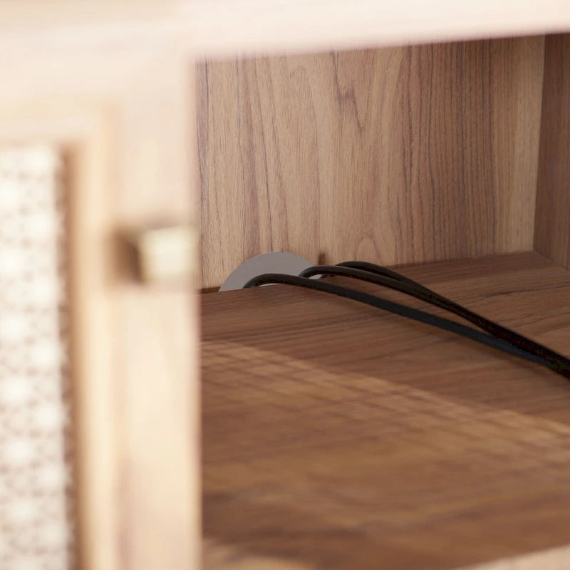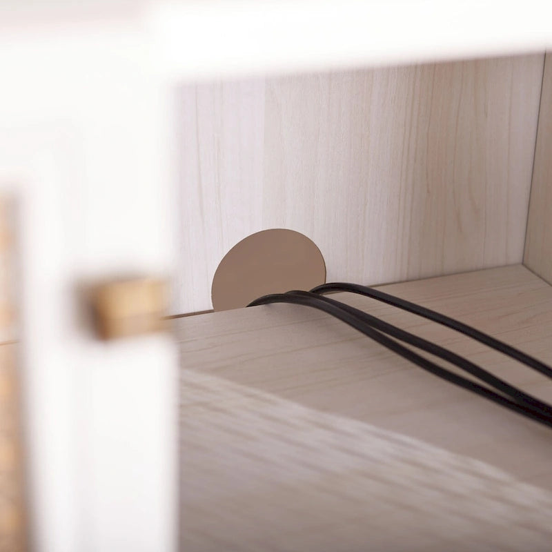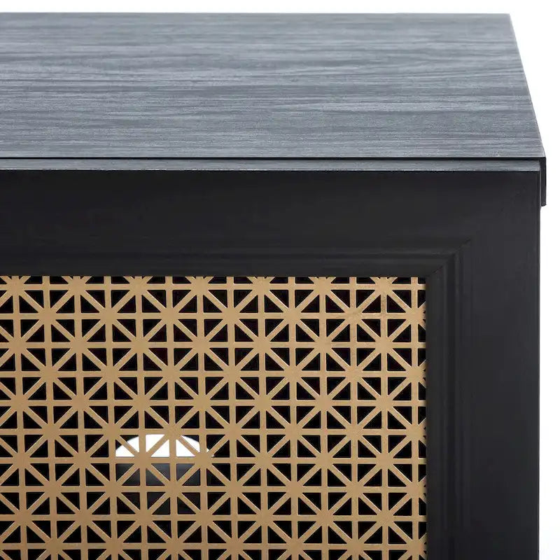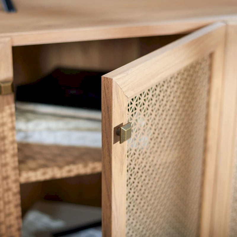 Lo splendore tradizionale incontra l'eleganza contemporanea in questo mobile porta TV. Le quattro ante rifinite di Piran sono impreziosite da una rete a maglie dorate che crea un contrasto artistico e crea un punto focale decorativo di grande impatto in qualsiasi area dedicata all'intrattenimento, mentre i due ripiani offrono ampio spazio di archiviazione.