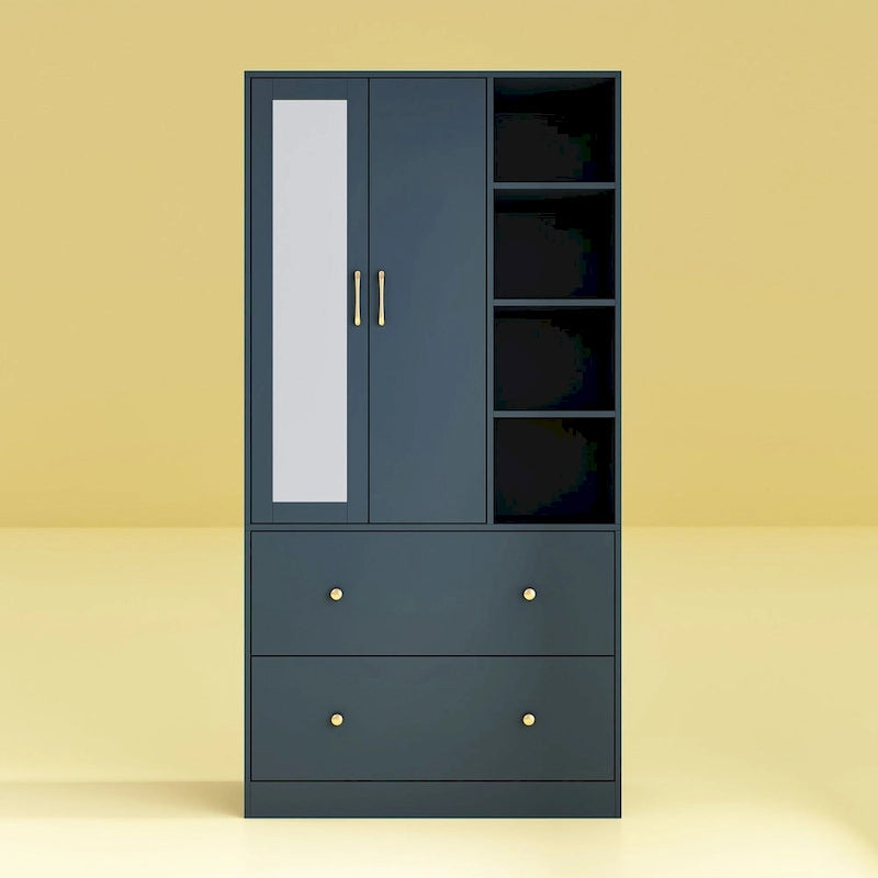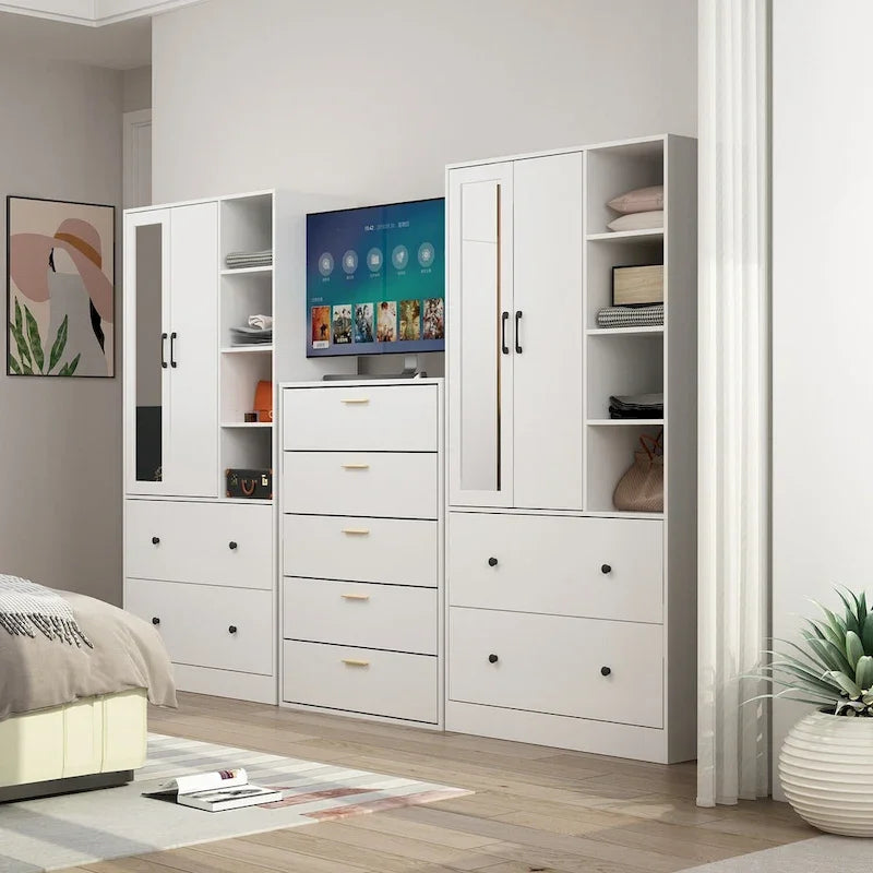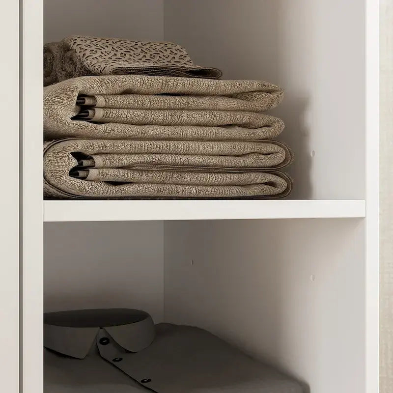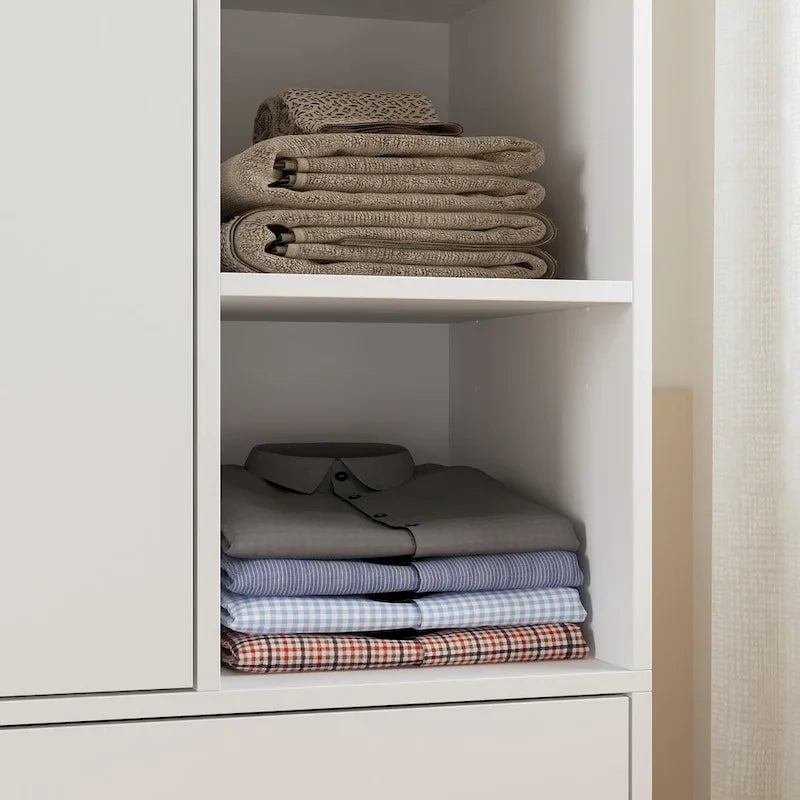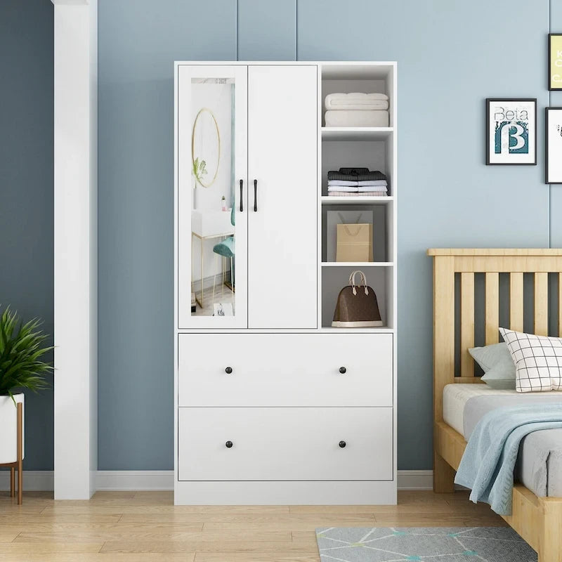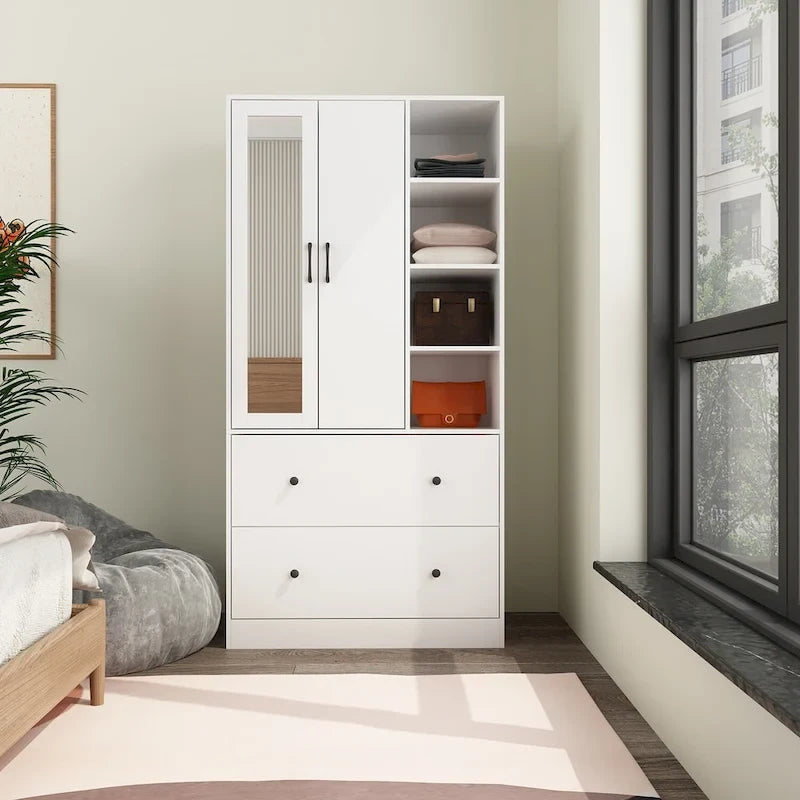 Dispone di 2 ampi cassetti nella parte inferiore, l'armadio ha 4 ripiani aperti e un grande mobiletto che offre spazio pratico per riporre i tuoi oggetti domestici; l'asta appendiabiti è pronta per appendere cappotti, abiti e camicie.