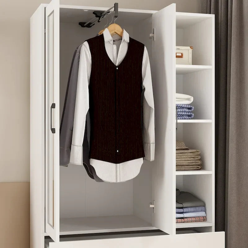 Armadio guardaroba con asta appendiabiti scalabile, specchio salvaspazio