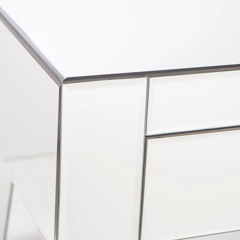 Rivestito di specchi bisellati su ogni centimetro quadrato, questo tavolino Olivia di SEI Furniture irradia uno stile glamour e sofisticato. Il concetto di specchi crea l'illusione di uno spazio aperto, anche in stanze accoglienti, e i due cassetti rivestiti in feltro aiutano a tenere tutto in ordine.