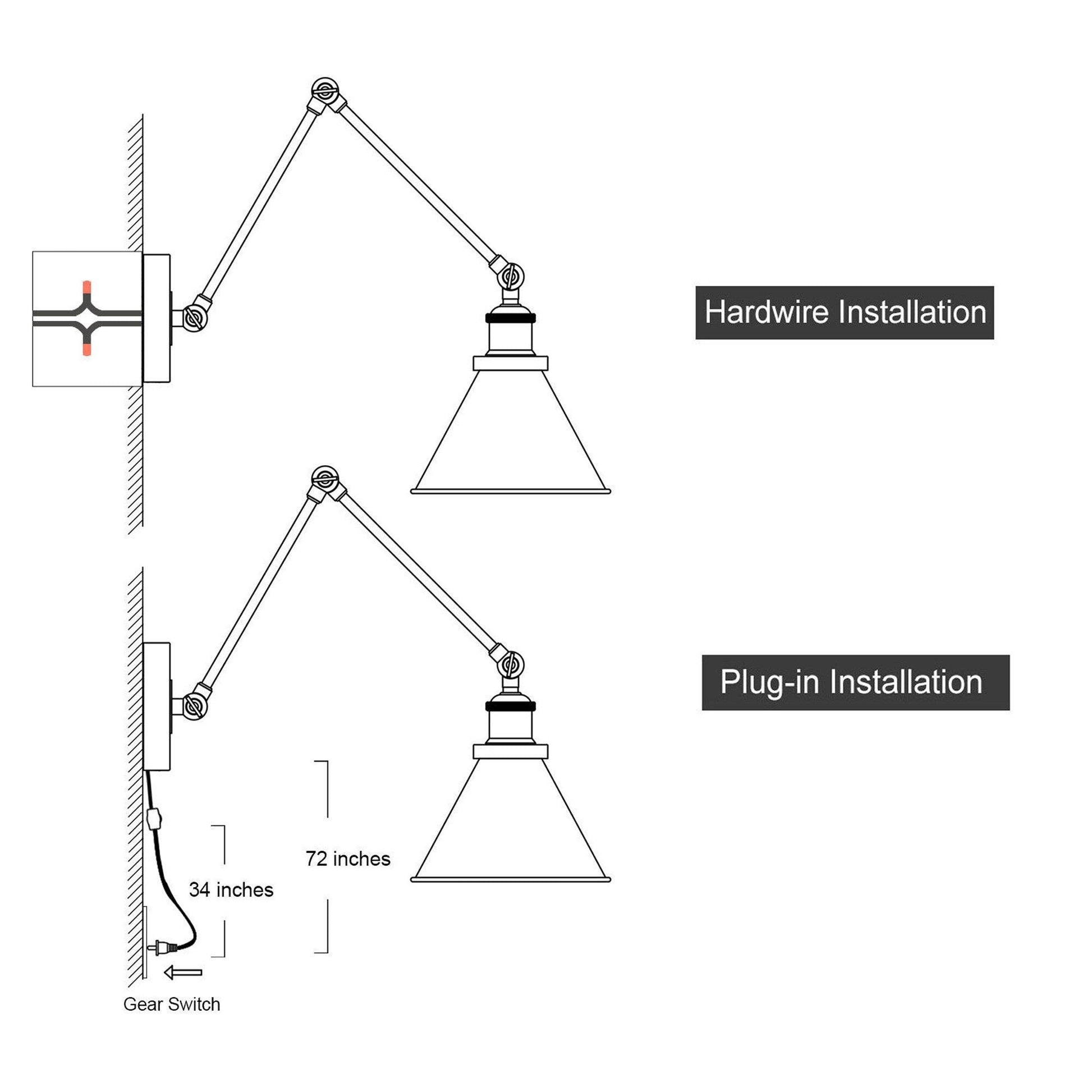 Set di 2 moderne luci a braccio oscillante regolabili, applique da parete cablate e con spina