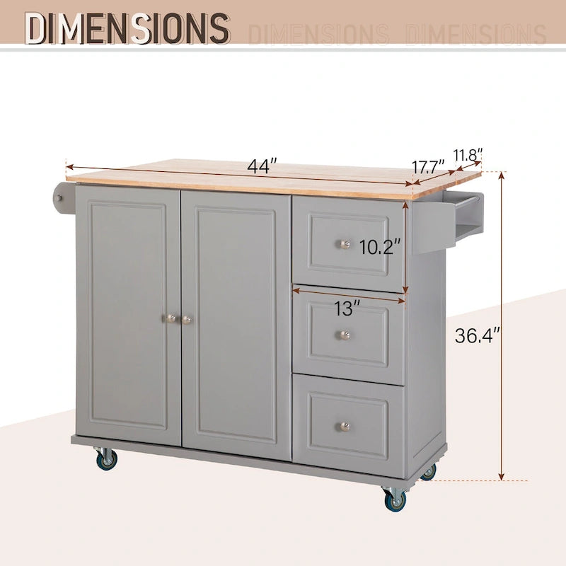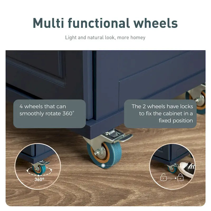 Aggiungi stile e funzionalità alla tua cucina con il carrello da cucina con ruote MAISON ARTS. Con un design versatile che si adatta sia agli interni tradizionali che a quelli rustici, questo carrello offre ampio spazio di archiviazione, tra cui un ampio mobile, tre cassetti, un portabottiglie e un portasciugamani. Il piano di lavoro a ribalta è perfetto per gli spazi compatti e le quattro ruote con freno ne facilitano lo spostamento e il posizionamento. Realizzato in MDF e legno di caucciù con una finitura verniciata di alta qualità, questo carrello è disponibile nei colori bianco, nero, grigio o blu scuro.