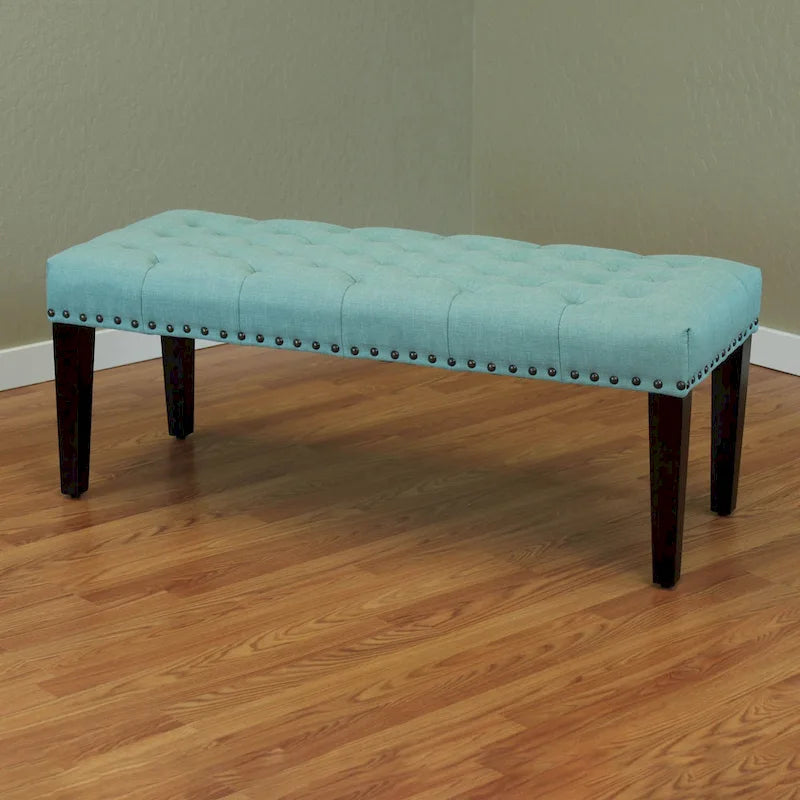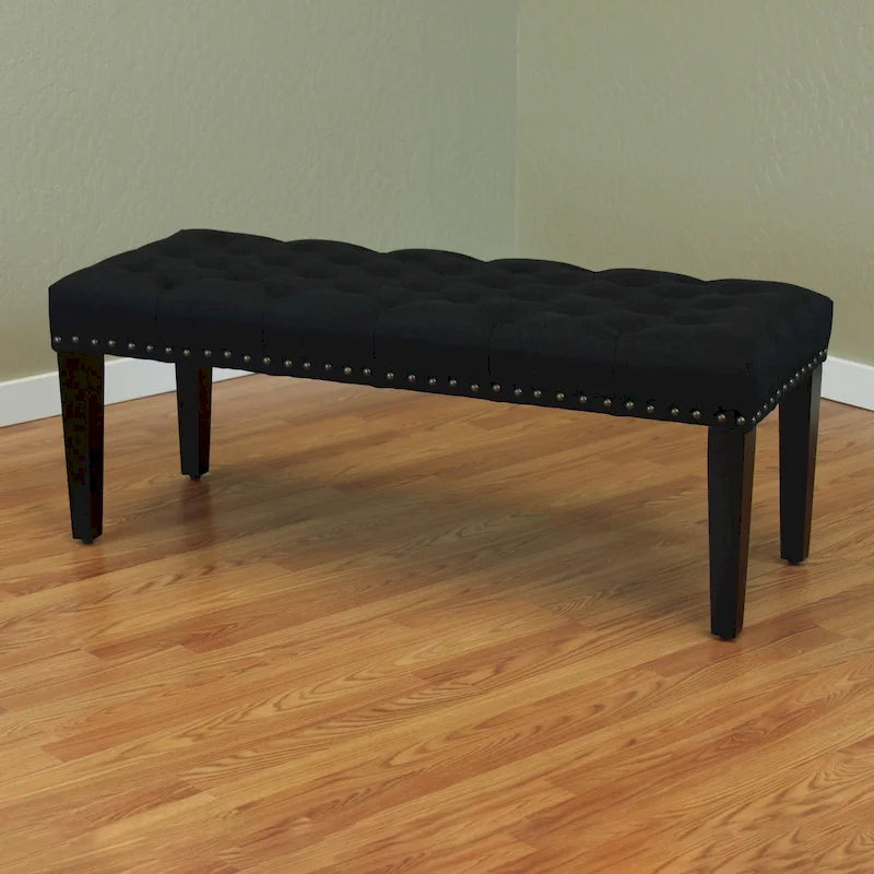 Aggiungi stile e comfort alla tua casa con la panca di transizione imbottita in lino Sopri da 124 cm. Perfetta come seduta aggiuntiva nella zona pranzo, nel soggiorno o nell'ingresso, questa moderna panca presenta un rivestimento in lino con profonda trapuntatura a bottoni e borchie. Il morbido piano imbottito in schiuma offre una comoda seduta nel colore che preferisci.