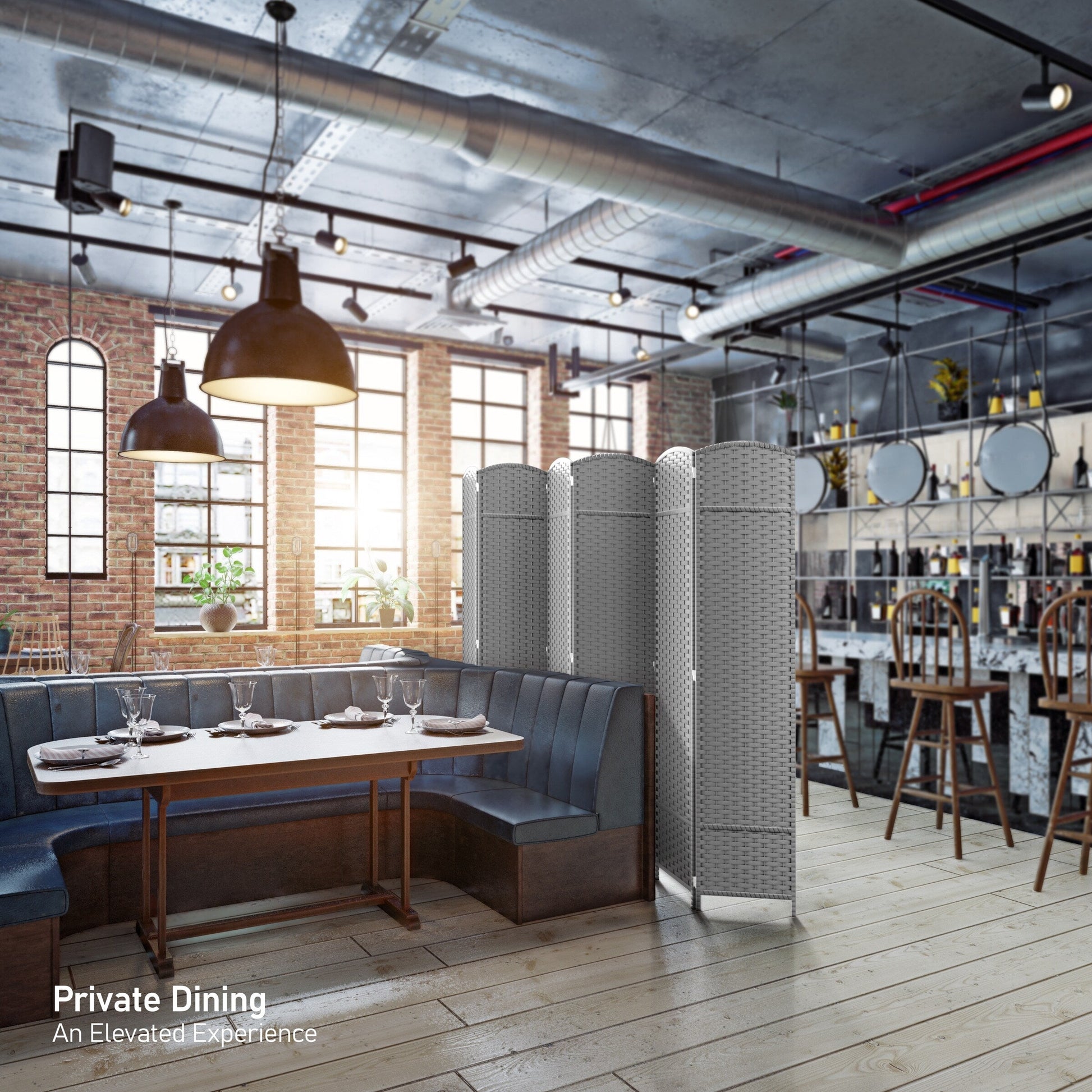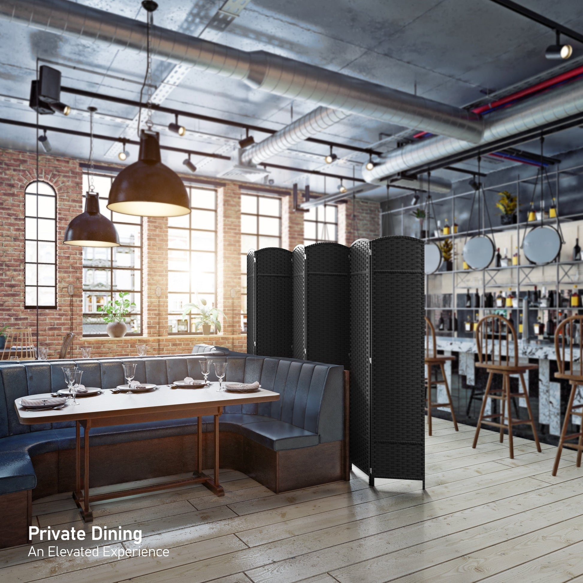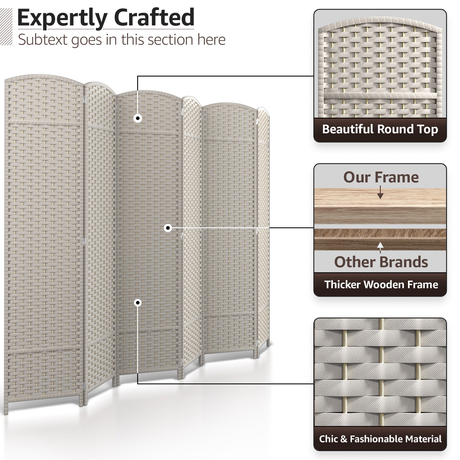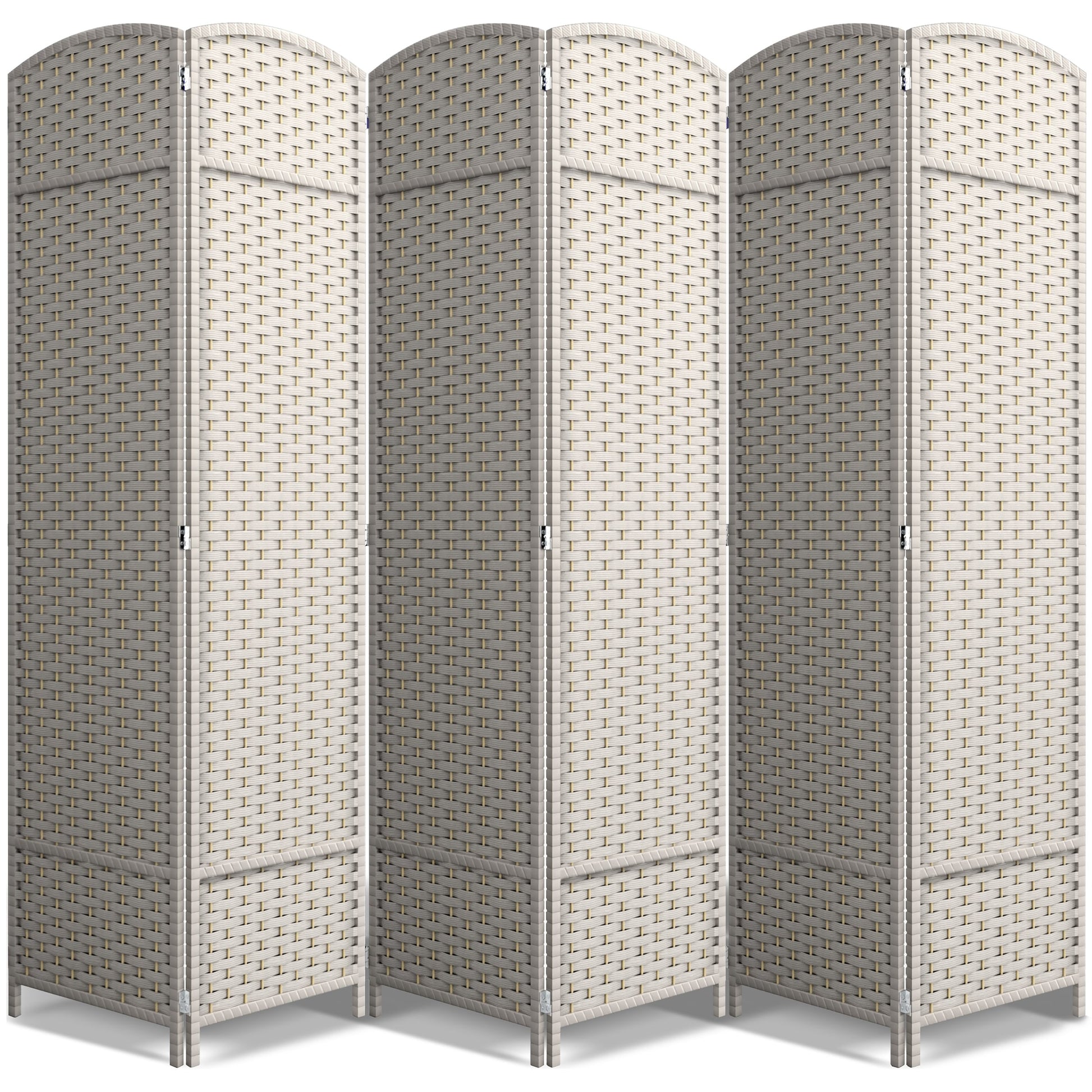 Divisorio per ambienti Sorbus a 6 pannelli, divisorio per la privacy alto, divisorio a parete pieghevole extra largo con doppia cerniera, intrecciato a mano - 6 piedi