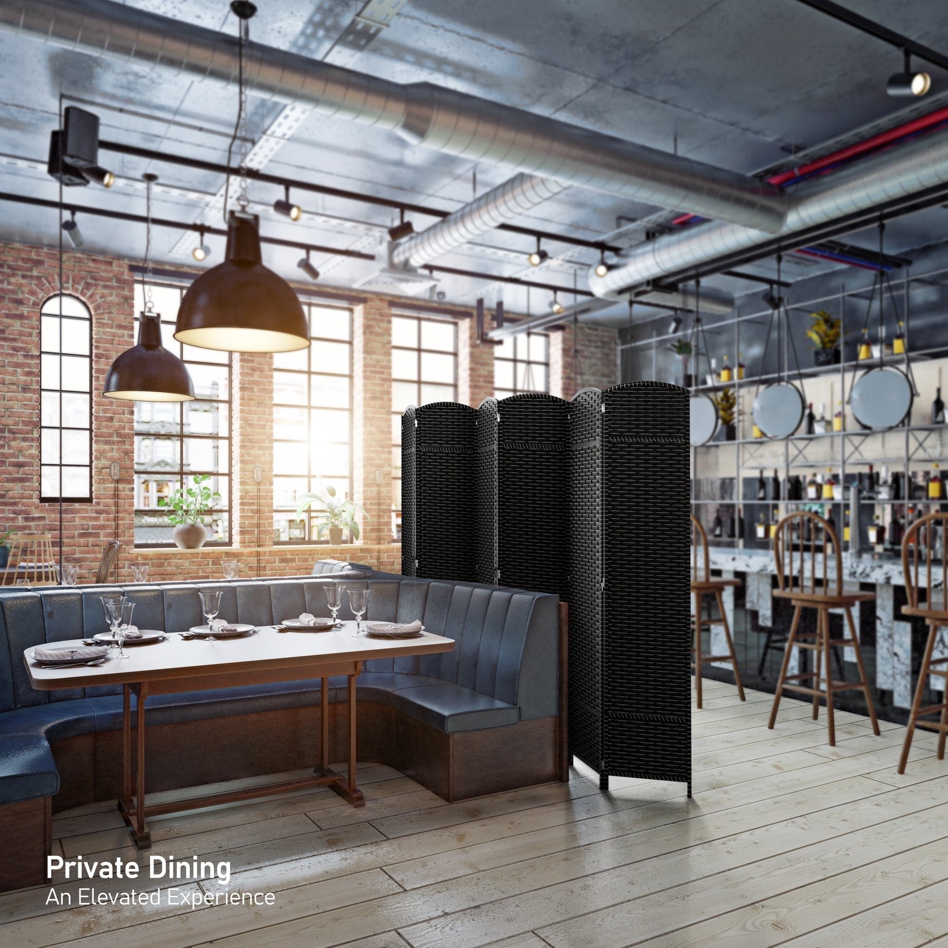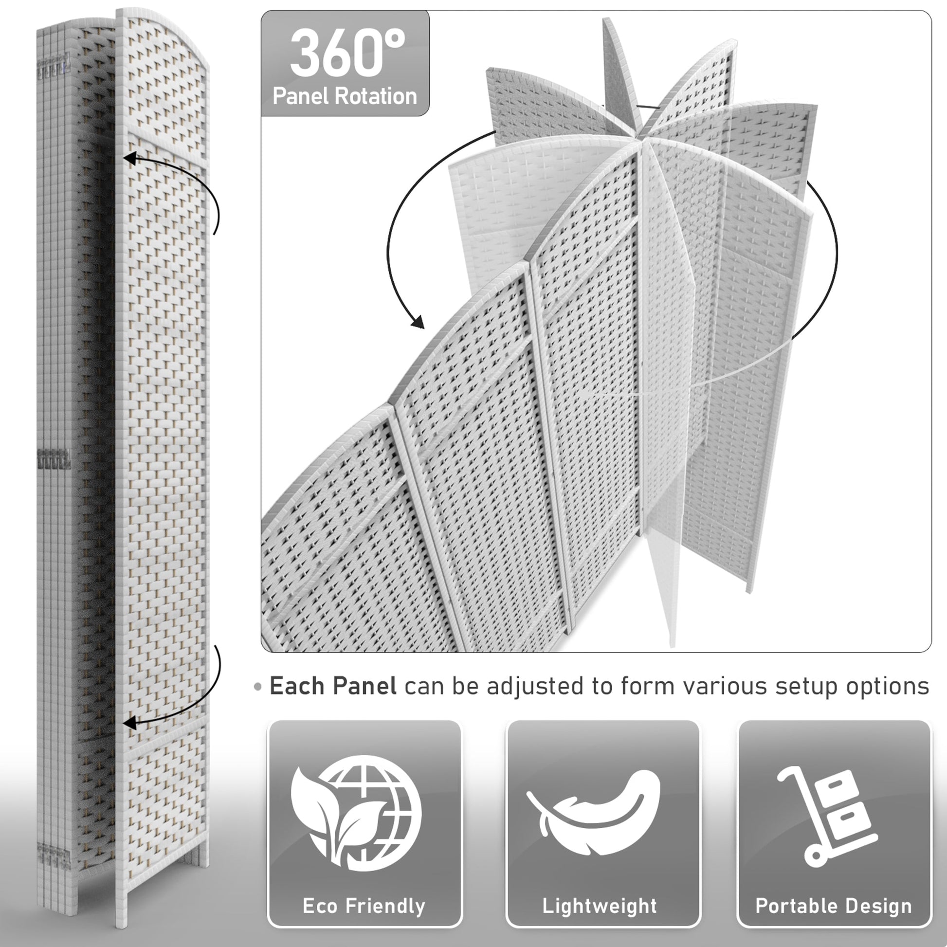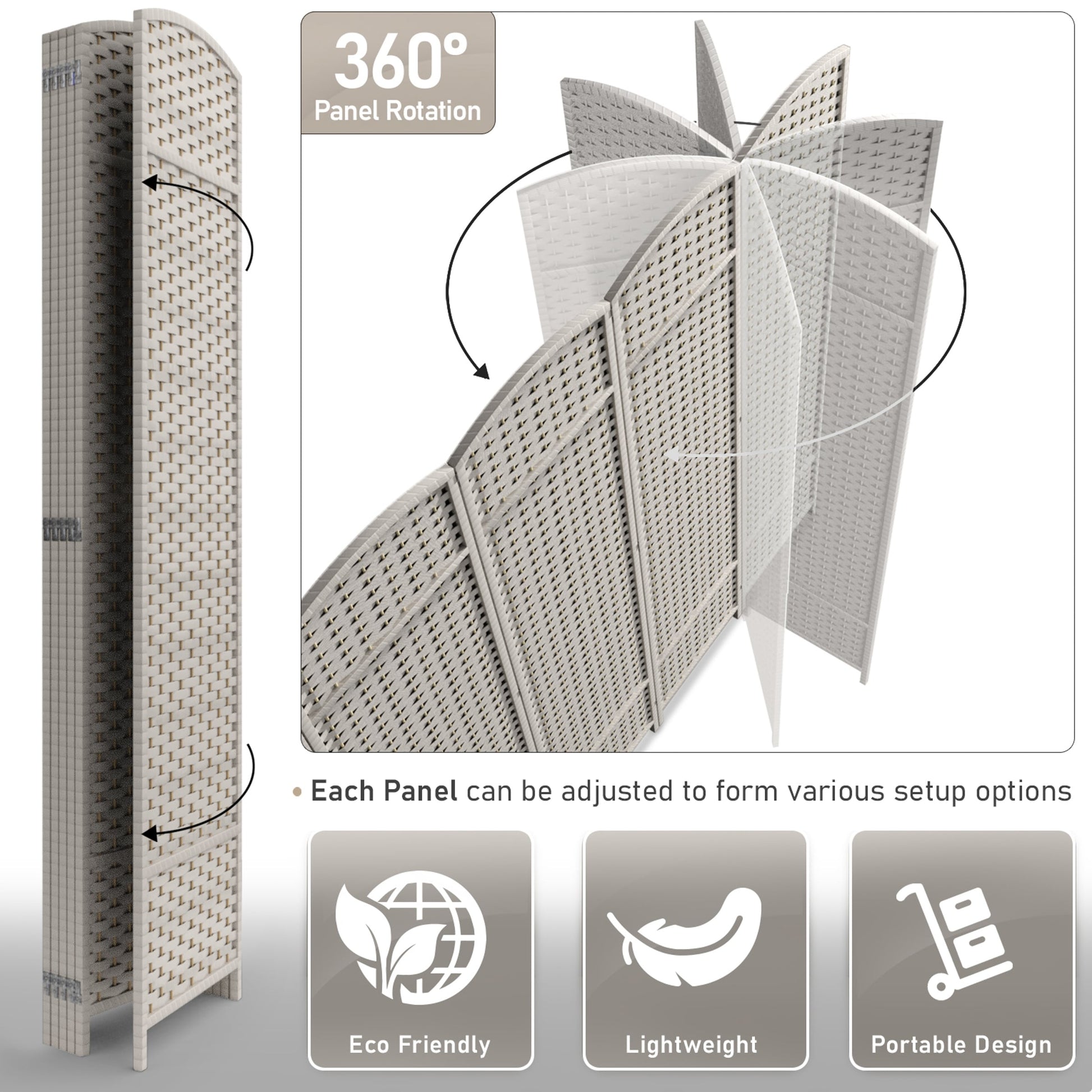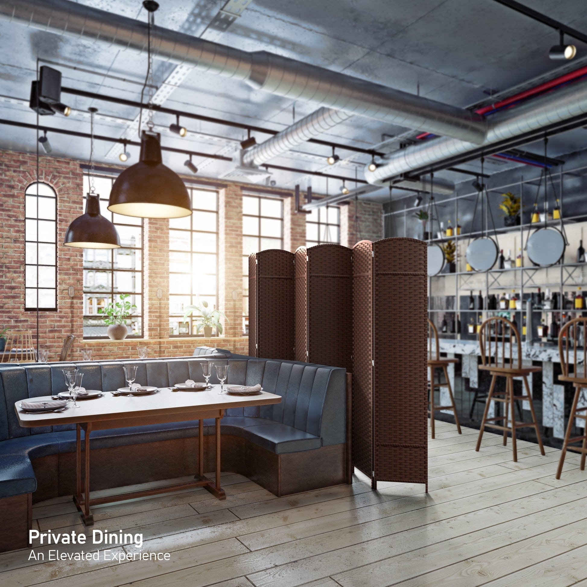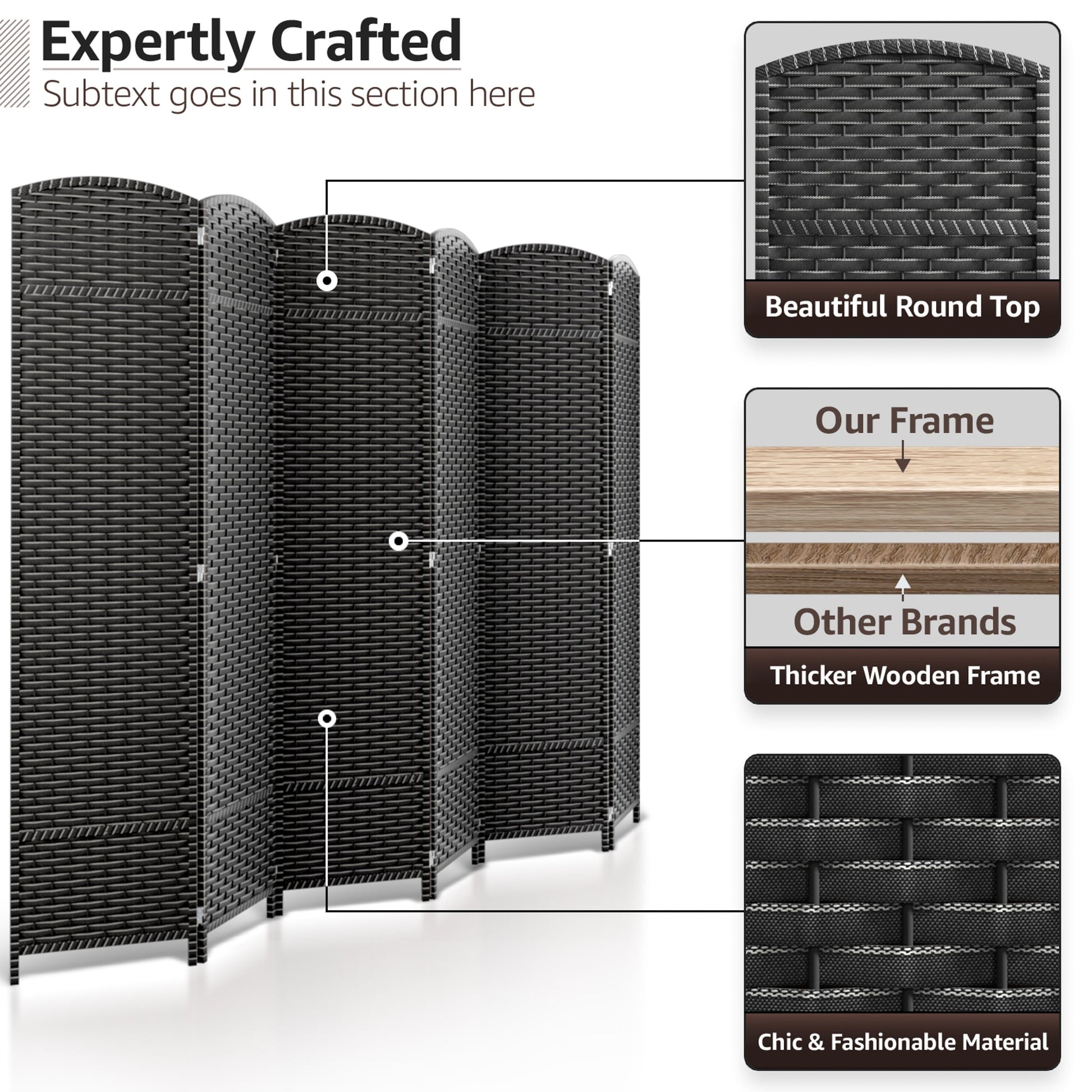 Divisorio per ambienti Sorbus a 6 pannelli, divisorio per la privacy alto, divisorio a parete pieghevole extra largo con doppia cerniera, intrecciato a mano - 6 piedi
