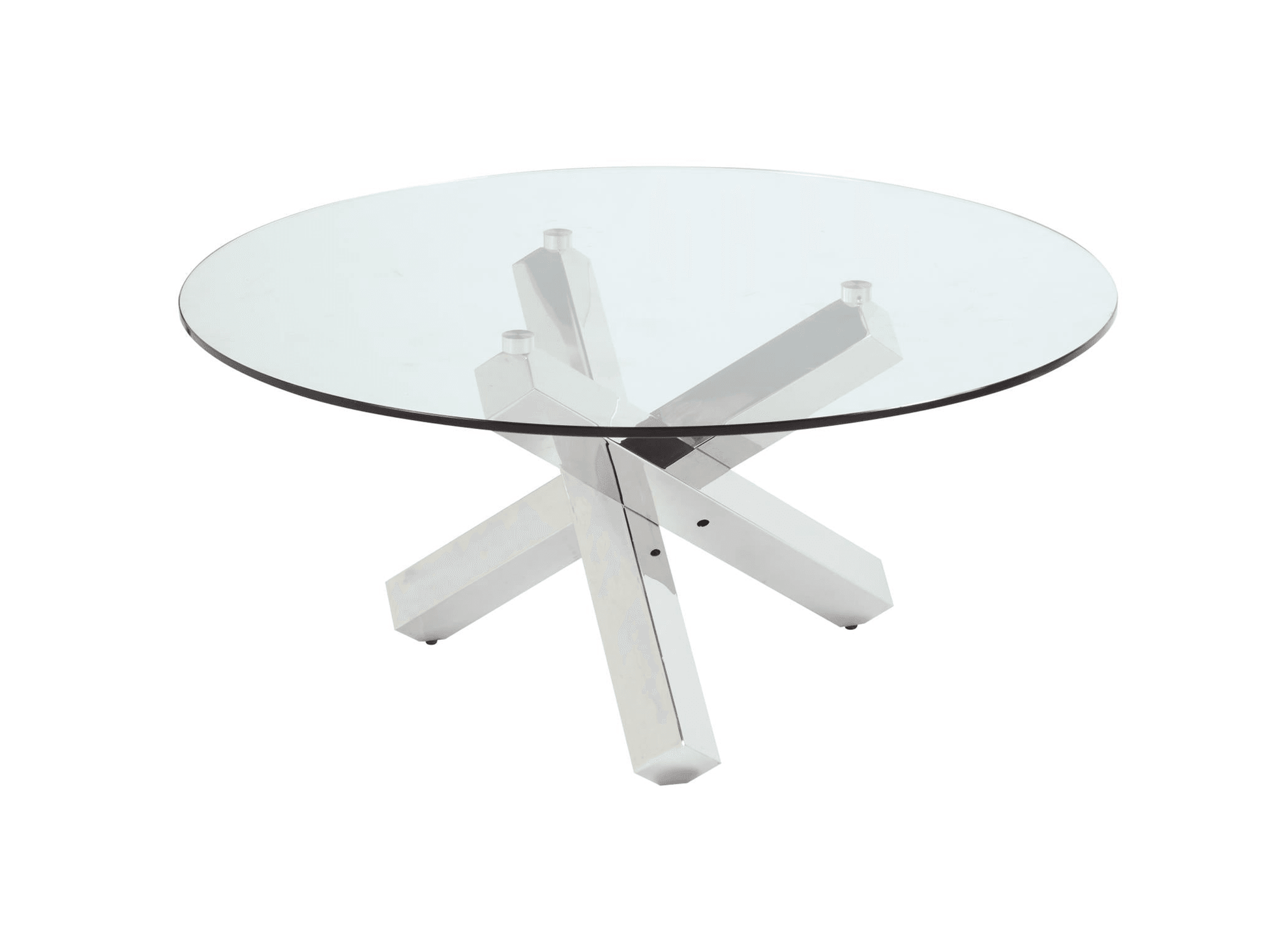 Piano in vetro conbase in acciaio lucido Criss-Cross