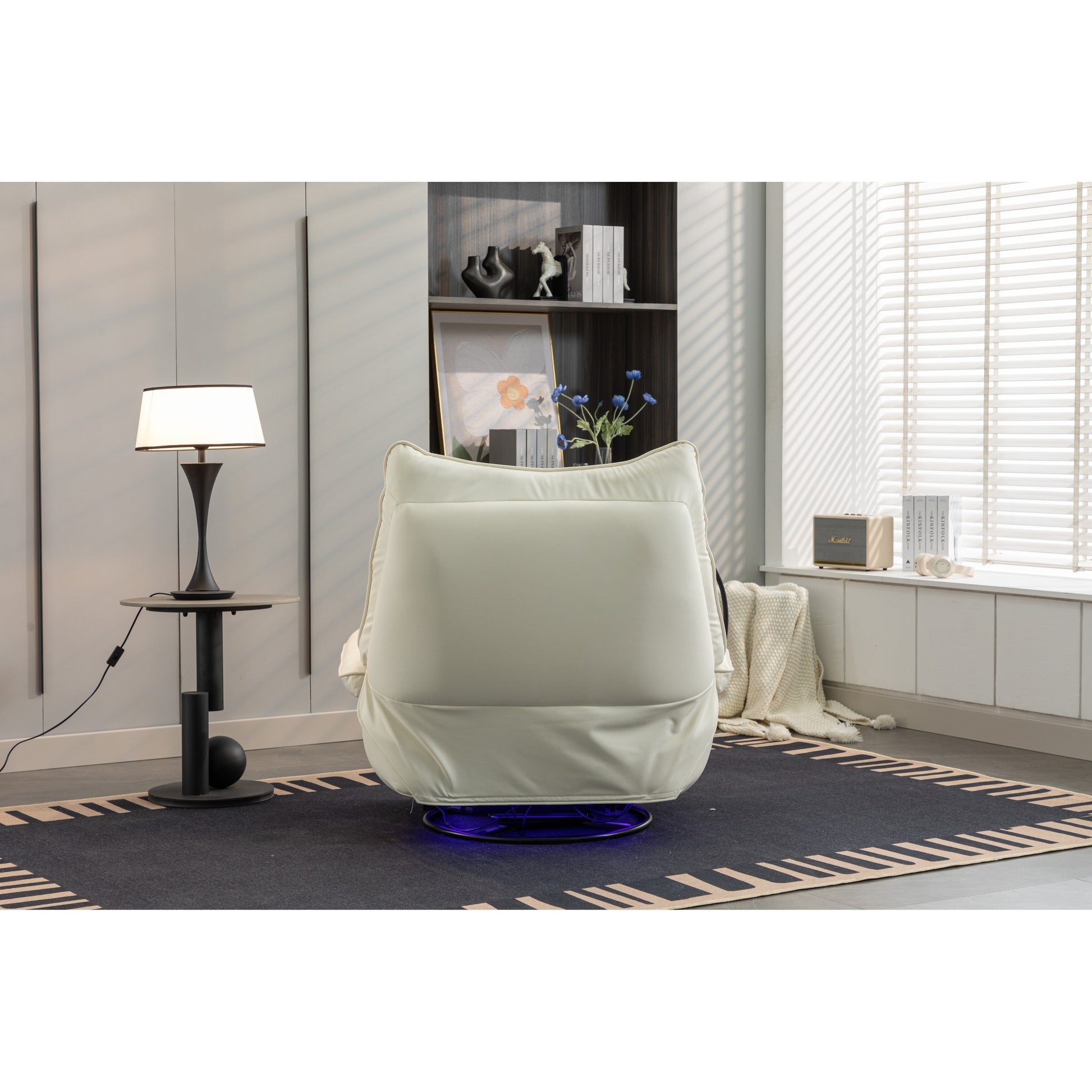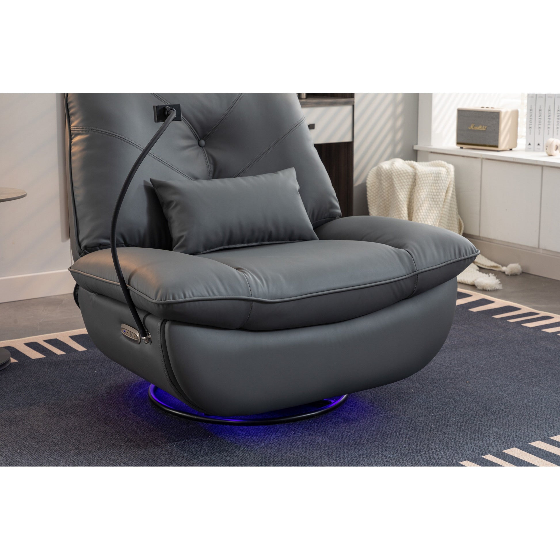 - Questa poltrona reclinabile girevole a 270° unisce praticità e intrattenimento, grazie al supporto per telefono integrato e alle porte di ricarica. Dotata di altoparlanti Bluetooth per un suono avvolgente, puoi goderti facilmente video o musica mentre ti rilassi. La poltrona offre anche un vano portaoggetti nascosto nel bracciolo per piccoli oggetti e il suo facile montaggio richiede solo 3 minuti, rendendola un'ottima aggiunta a qualsiasi soggiorno, camera da letto o appartamento.
