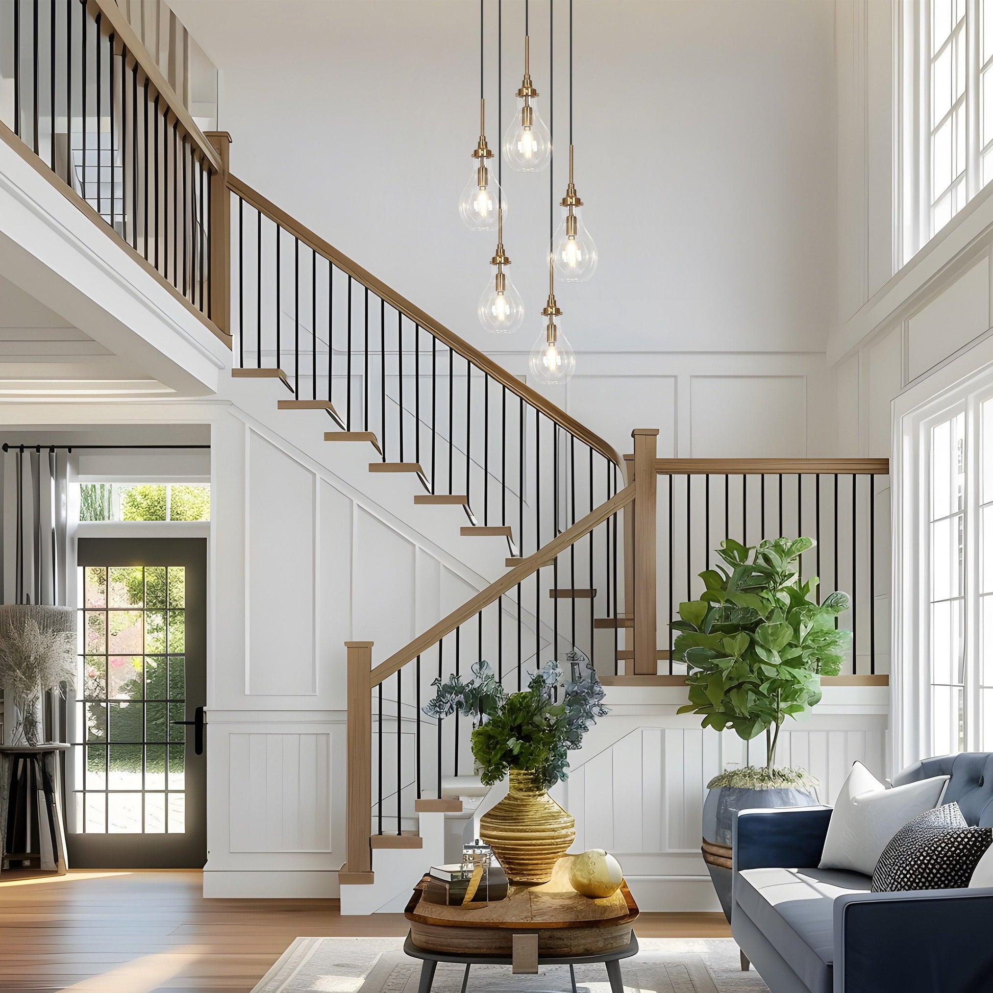 Lampadario moderno a goccia in vetro Synia a 5 luci per ingresso, scale e soffitti alti - D15'' x H18,2-74,2''