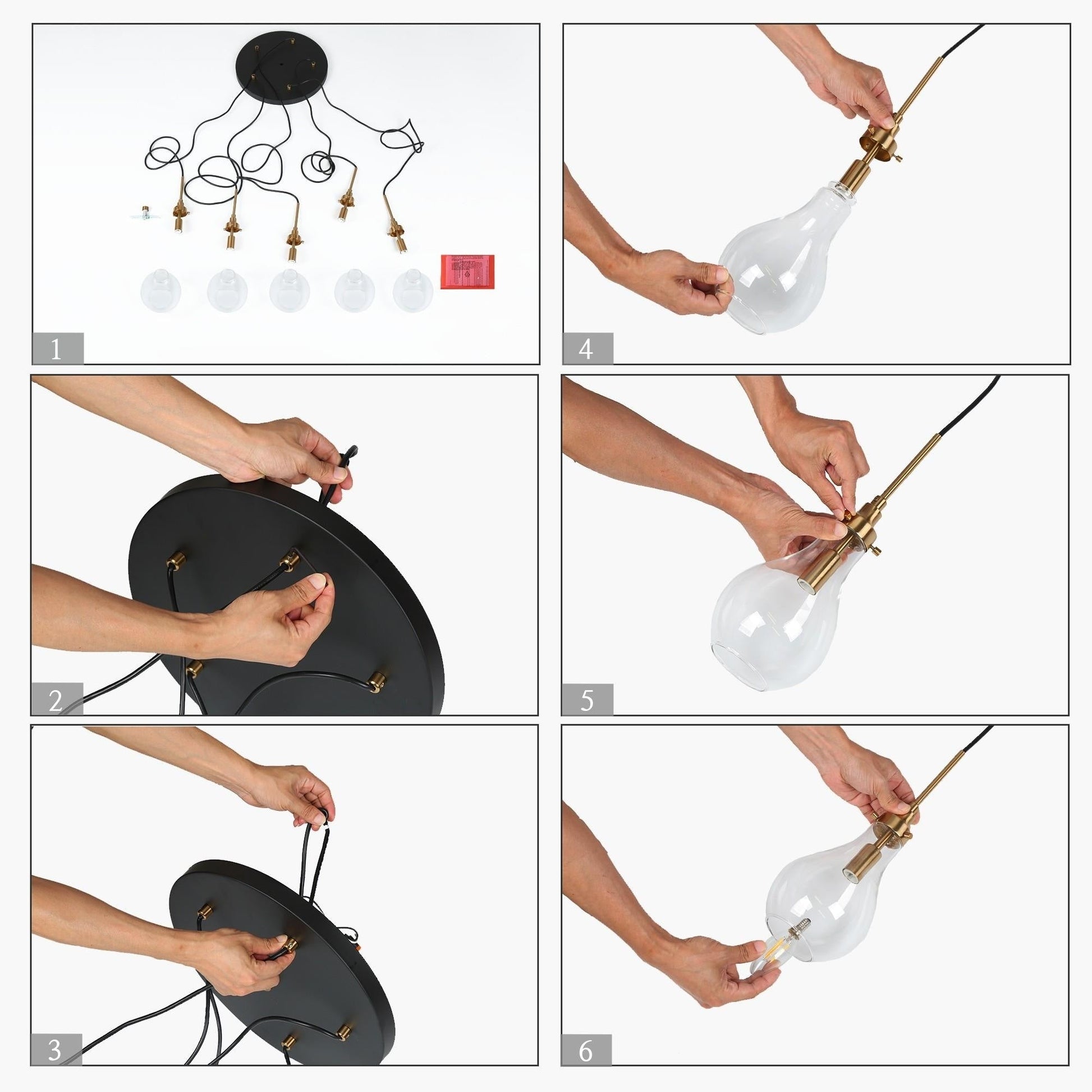 • Richiede 5 lampadine di tipo B, max 40W, attacco E-12 (non incluse); interruttore dimmer/lampadine compatibili, non incluse