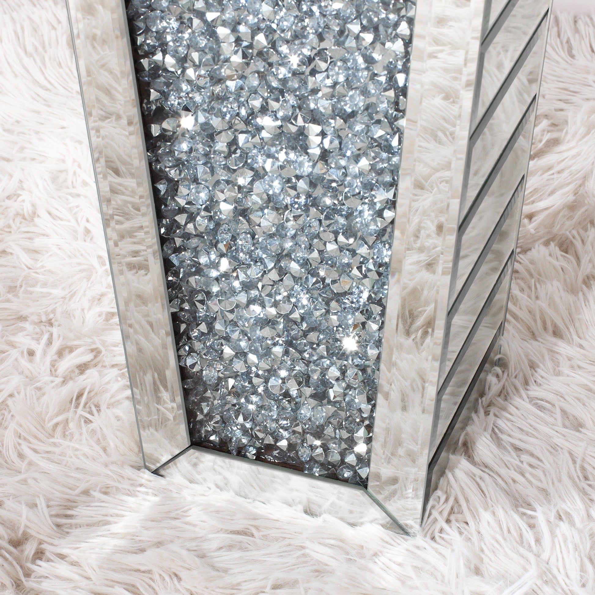- Glam Design - Un lato del vaso a specchio è decorato con brillanti strass. Questo conferisce alla casa un senso di spazio più luminoso e spazioso.