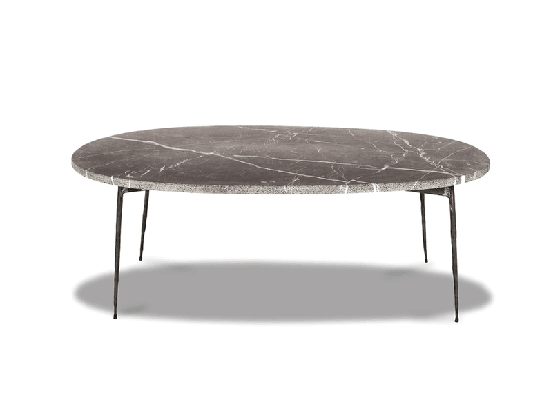 I tavoli TARIQ sono capolavori artigianali. La base è in acciaio forgiato e martellato con eleganti punte rivolte verso il basso. Il marmo nero spagnolo Marquina ha una finitura levigata e una forma naturale, mentre i dettagli dei bordi sono sabbiati, conferendo ai tavoli il loro aspetto artigianale.