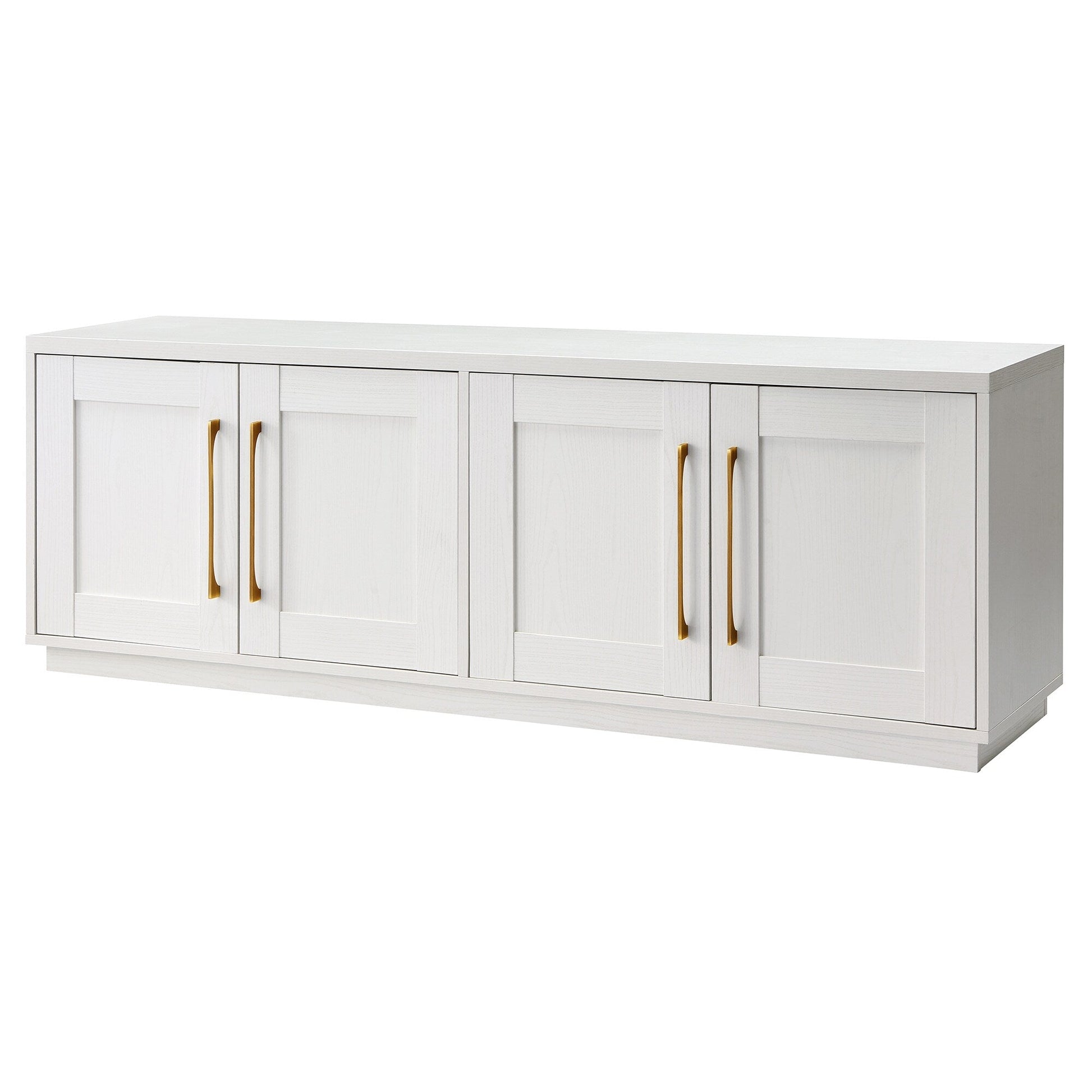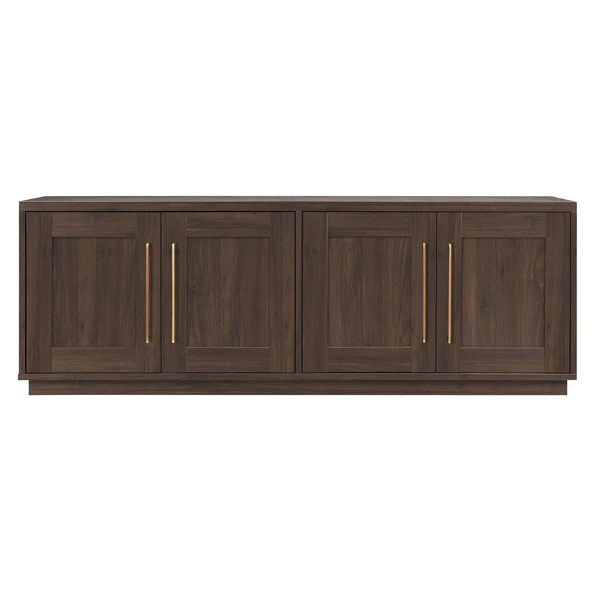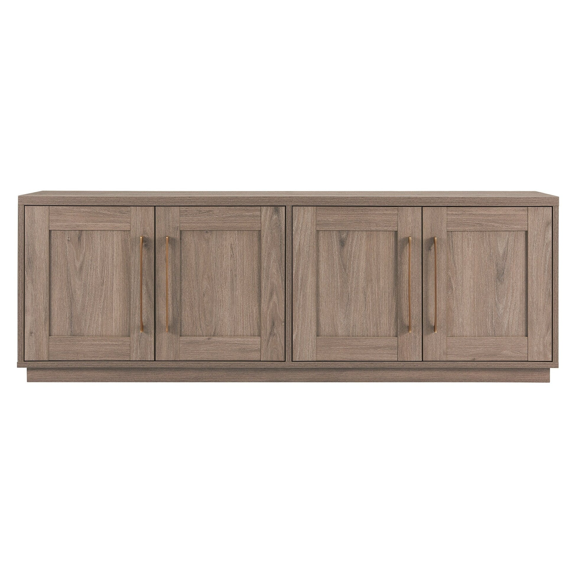 Combina funzionalità e design classico di transizione con questo moderno mobile TV. La sua ricca tonalità legno crea una calda palette neutra che si integra perfettamente con qualsiasi schema cromatico, mentre il suo stile classico si abbina perfettamente allo stile di design del tuo soggiorno, studio o sala giochi. Questo mobile con schienale robusto è dotato di due ampi mobili chiusi con eleganti ferramenta in ottone. I fori per la gestione dei cavi e i ripiani interni regolabili aiutano a mantenere in ordine i tuoi dispositivi multimediali e le tue console.
