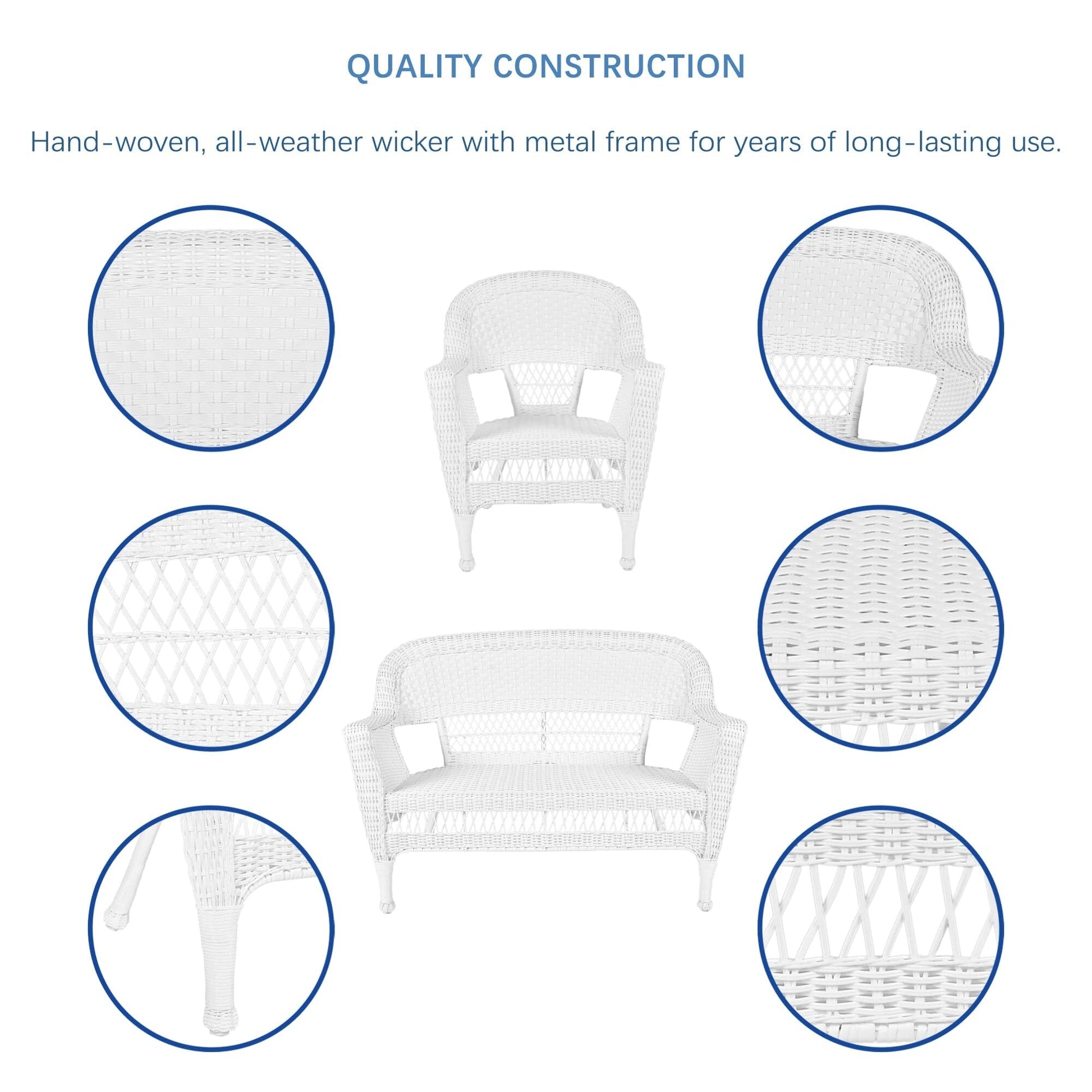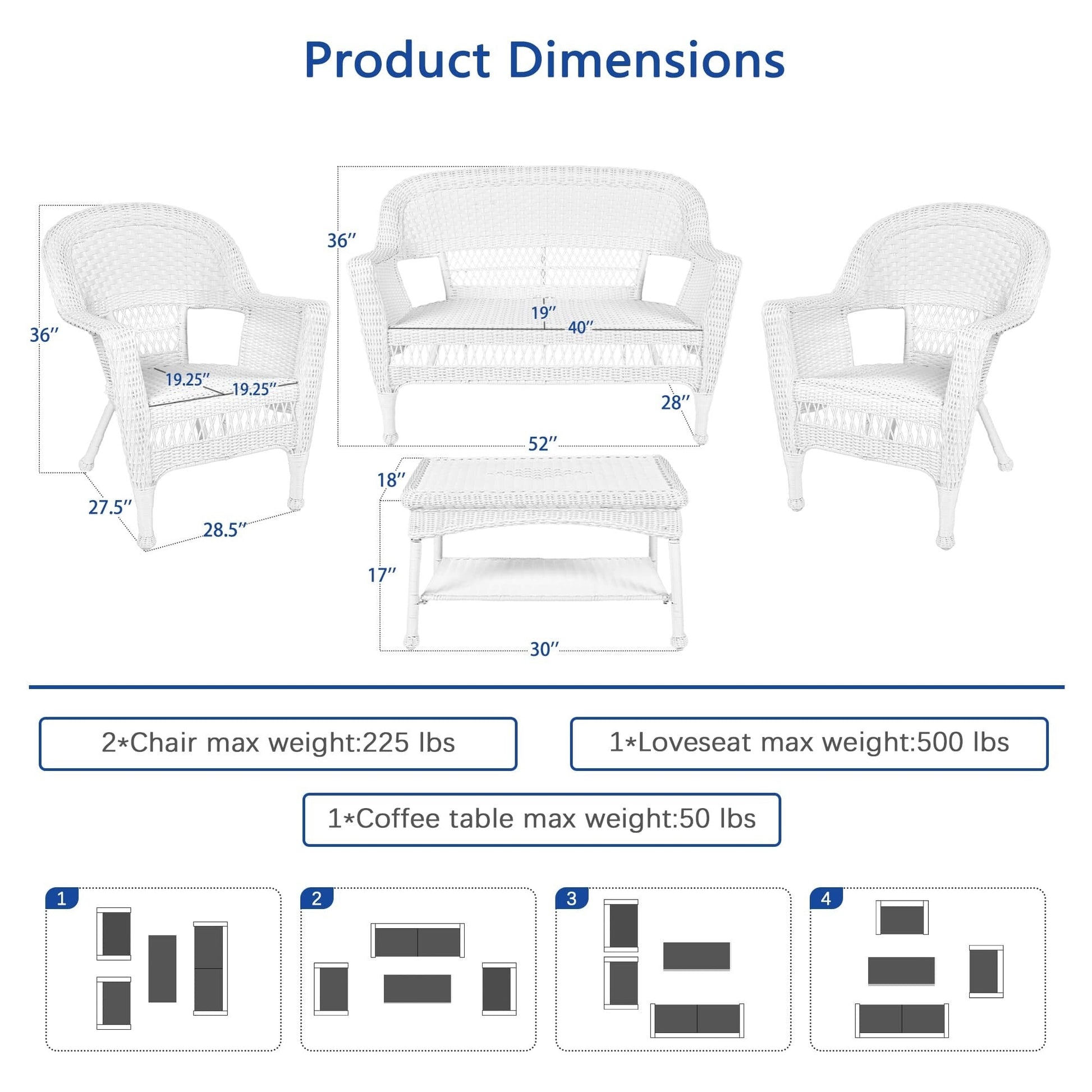 Rilassati con stile e comfort con questo splendido set da giardino in vimini composto da 4 pezzi che trasformerà il tuo spazio abitativo all'aperto. Realizzato in resina di alta qualità, resistente alle intemperie e con una robusta struttura in acciaio, questo set è progettato per resistere a diverse condizioni atmosferiche ed è perfetto per l'uso interno ed esterno. Il tradizionale design in vimini bianco aggiunge un tocco di classe al tuo patio o giardino, mentre il comodo divano, le due sedie e il tavolino da caffè offrono ampia seduta per te e i tuoi ospiti.