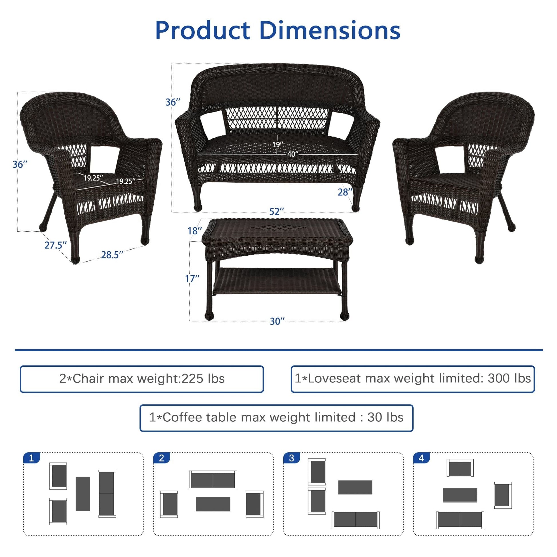 - Dimensioni delle sedie: 29,5'L x 26'W x 36'H, 17 libbre ciascuna