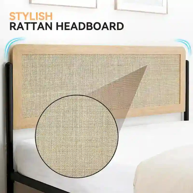 Il nostro letto in rattan è il luogo ideale per riposare fisicamente e mentalmente dopo una lunga giornata di lavoro. Aggiungi un tocco di fascino rustico alla tua camera da letto con questa elegante testiera in rattan, realizzata in rattan naturale di alta qualità che rende questo letto molto naturale e pulito. La struttura del letto con testiera in rattan si abbina a molti stili come rustico, metà secolo, moderno, moderno di metà secolo, boho, retrò, scandinavo e minimalista. La testiera a pannello è progettata con angoli arrotondati, che impediscono efficacemente al tavolo di ammaccarsi e sono particolarmente adatti alle famiglie con bambini piccoli. Sarebbe anche un regalo ideale per familiari e amici per inaugurazioni di una nuova casa, anniversari, compleanni e altre festività.