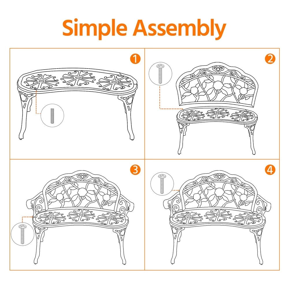 - Materiali antiossidanti per una maggiore durata: robusta e leggera, questa panchina da parco è realizzata in alluminio di alta qualità con una finitura impermeabile e resistente alle intemperie. La superficie liscia e liscia è facile da pulire e manutenere.