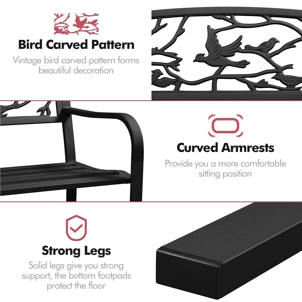 Aggiungi un tocco di natura al tuo spazio esterno con la nostra panca da giardino Yaheetech da 15,2 cm. Il motivo vintage a forma di uccello sullo schienale aggiunge un tocco di bellezza e favorisce il passaggio dell'aria, mentre la seduta leggermente curva è ampia e profonda per una seduta confortevole. Realizzata in robusto ferro con rivestimento protettivo impermeabile, questa panca è robusta e sufficientemente resistente per un utilizzo a lungo termine. Con una portata massima di 180 kg/397 libbre, è adatta a parchi, cortili, giardini, matrimoni e altro ancora. I braccioli sono curvi per il massimo comfort e la seduta è progettata con strisce verticali per una migliore circolazione e distribuzione del peso. La finitura resistente alle intemperie garantisce resistenza in qualsiasi condizione atmosferica e il montaggio è semplice grazie agli attrezzi e alle istruzioni inclusi.