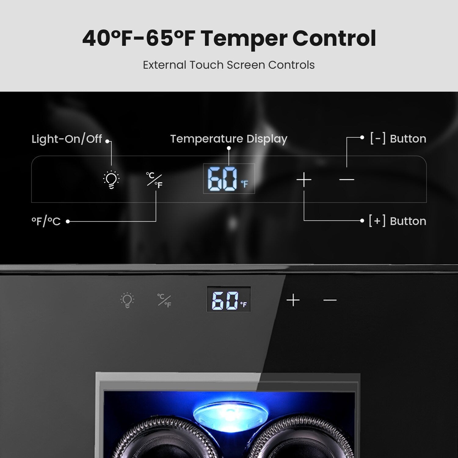 - Pannello touch intelligente: controlla e monitora senza sforzo le temperature grazie all'intuitiva interfaccia del pannello touch, assicurandoti che i tuoi vini siano conservati nelle condizioni ottimali.